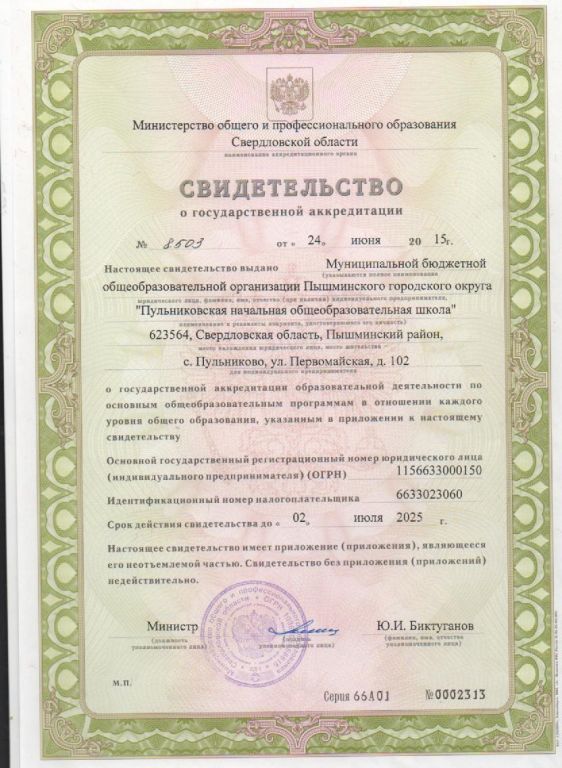 | Полное наименование образовательной организации* | муниципальная бюджетная общеобразовательная организация Пышминского муниципального округа Свердловской области «Пульниковская начальная общеобразовательная школа» |